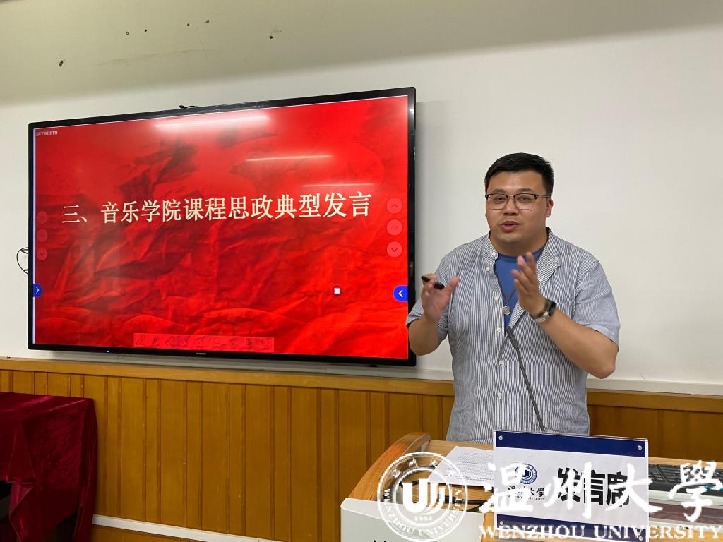 邹跃飞院长总结讲话,他对目前各系开展的课程思政工作给予了高度肯定,点明了学院、各系、每一位老师在下一阶段深化推进课程思政工作的难点和重点,他鼓励老师们结合音乐专业的特点,深入挖掘课程的德育元素,明确课程思政教学目标、创新教学方式方法、优化课程教学设计、改善课堂管理,积极申报各类课程思政项目,他希望博彩平台大全