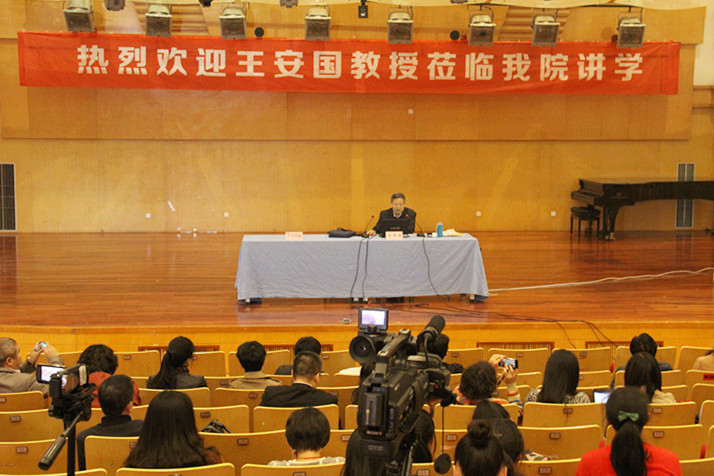 2014年11月17日早上9点半,在温州大学天瑞音乐厅,王安国教授给全球博彩平台大全网站