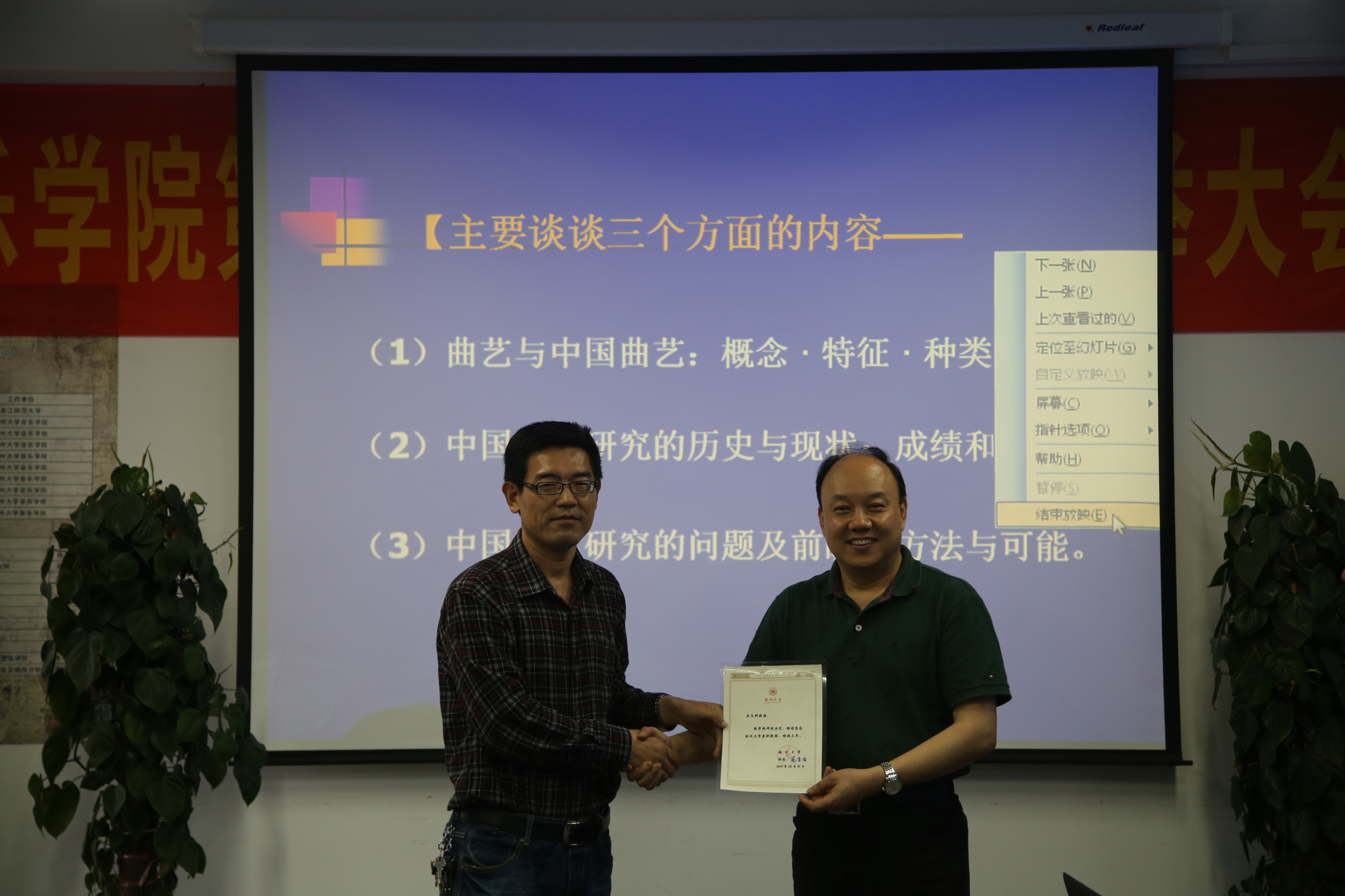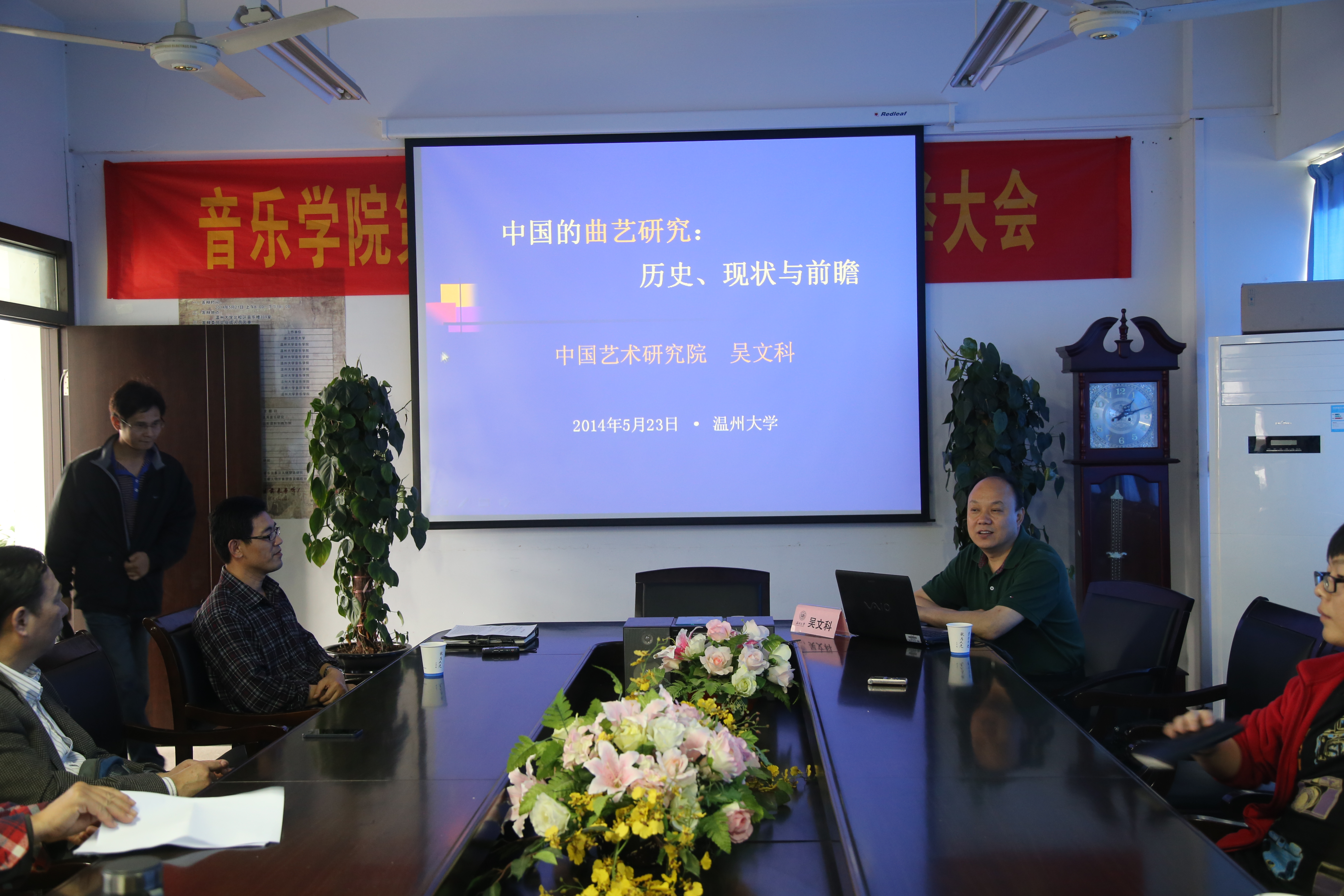 特邀中国艺术研究院曲艺研究所所长,研究员,博士生导师,中国曲艺家协会副主席,国家非物质文化遗产保护工作专家委员会委员吴文科教授莅临举办了主题为“中国的曲艺研究:历史、现状与前瞻”的学术讲座。讲座正式开始之前,赵玉卿院长对吴文科教授的研究领域做出介绍,对其学术成果做出高度评价,全球博彩平台大全网站