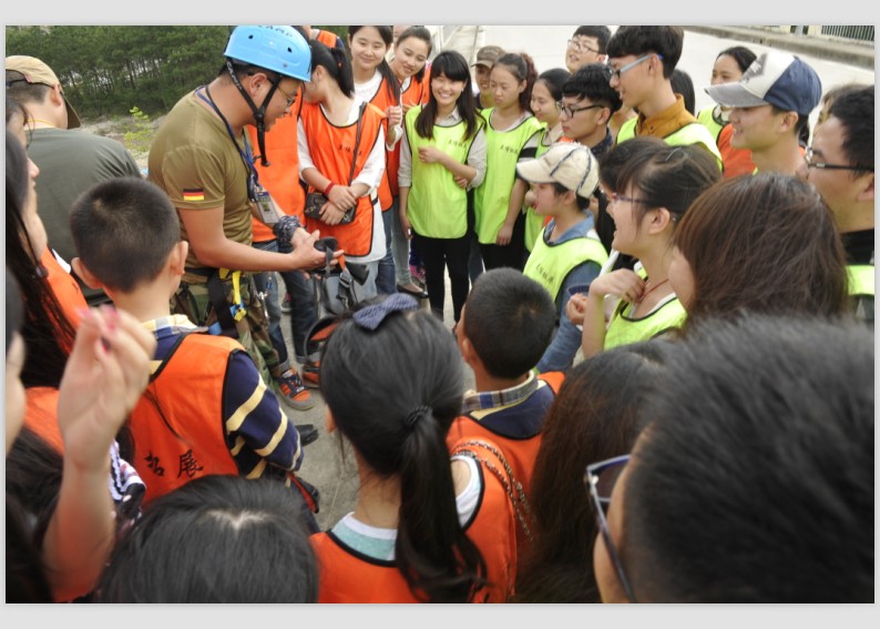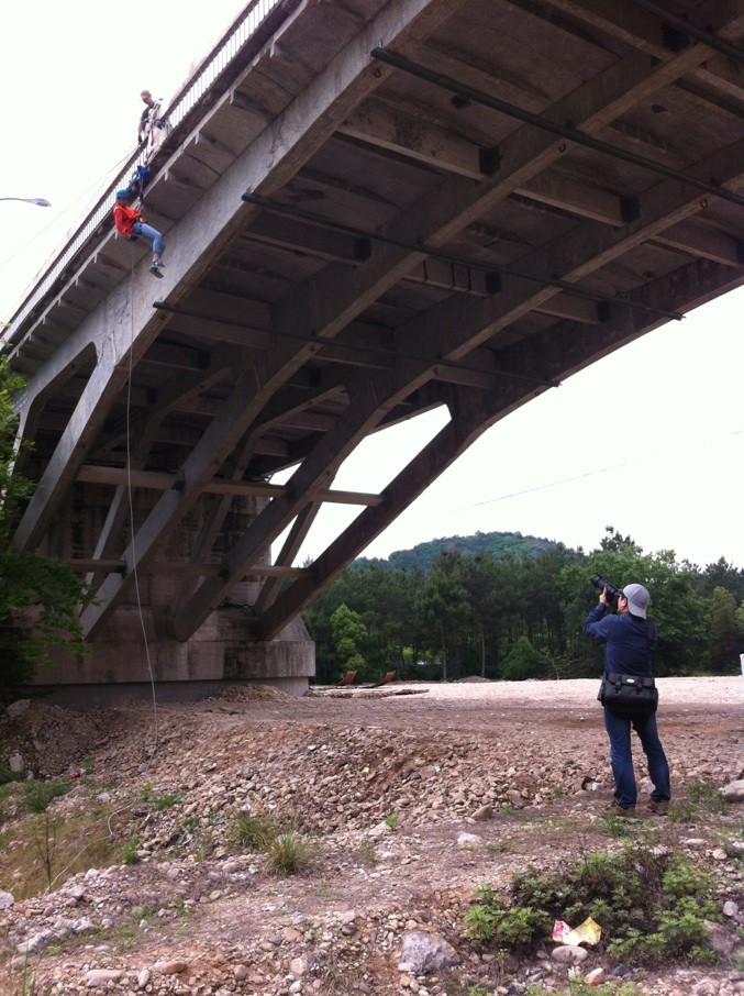 下午1点整,学生干部在培训师的带领进行户外“桥降活动”,即在高达60余米的桥上端滑到桥下端。这个活动极大程度的考验了队友彼此间的信任与细心。在大家彼此的团结帮助下,全部学生干部都圆满完成此次“桥降”任务,爱好摄影的刘书记还为每一位同学全程记录下了大家成功挑战自我的瞬间。