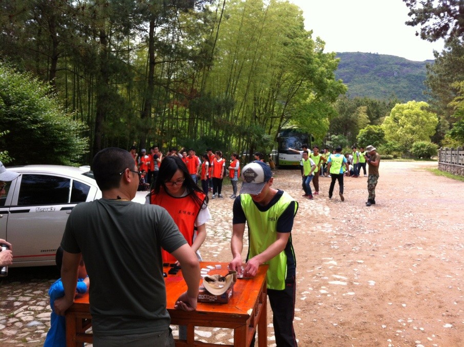 4月27日上午9点整,学生干部到达了楠溪江。在总培训师的号令下,我们进行了一项简单的素拓任务,目的旨在让大家熟悉培训的基本内容及彼此熟悉队友。接着我们分成了2个素质拓展队伍,并分别配备至少一名培训师进行了一系列的户外培训。