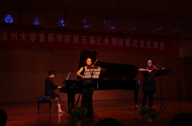 作曲系副教授陈欣若和著名音乐人邹畅为大家展现流行音乐的魅力。另外,也有各专业方面的学术讲座,例如讲师莫非关于“现代舞赏析”的讲座是为舞蹈教研室舞蹈专业学生而精心打造,Alex教授学术讲座及公开课也是为钢琴教研室钢琴专业学生带来福音。本届艺术周共有专业比赛七场,包括第二届音乐舞蹈知识竞赛、第四届钢琴大赛、器乐比赛、舞蹈比赛、声乐比赛等。本届艺术周还有音乐会共四场,其中,实验艺术剧院流行乐团为首场演出,影响甚广。另外,研究生专场音乐会、温州大学第四届大学生钢琴比赛颁奖音乐会都给大家带来了不一样的视听感受。本届艺术周还举办了一场博士论坛,为理论教研室的老师提供学习、交流的平台。另外,本届艺术周中,民乐团、室内乐团、合唱团各排练三次,舞蹈团、流行乐团各排练两次。