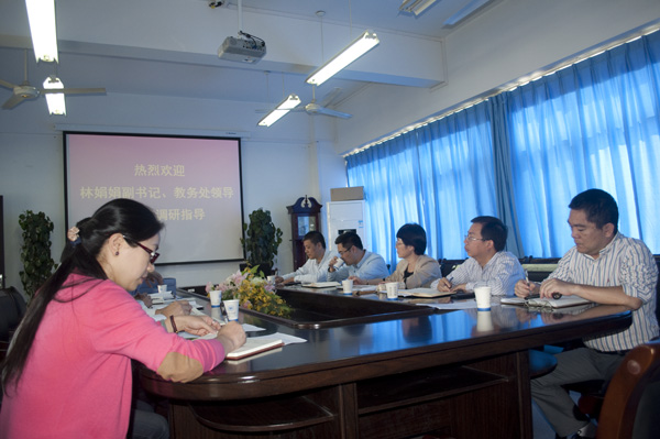 林副书记认真听取了学院领导班子汇报后,对学院一年来的工作给予了充分肯定。并就实践教学体系与平台建设、通识课程、教学业绩考核、青年教师培养等方面提出了指导性意见。林副书记要求学院班子要齐心协力,凝聚全院教师的力量,积极推进学院教学工作快速发展。