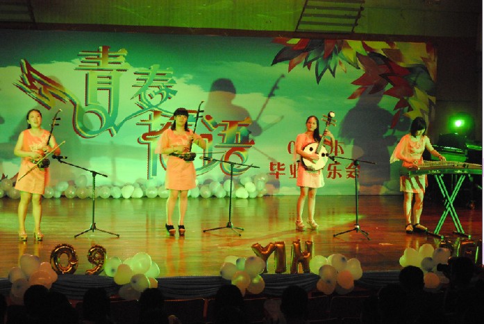 本次音乐会由“雾里看花”、“音花烂漫”、“百花齐放”三个篇章构成。09音本全体女生深情流露的合唱《我们的歌》以及诙谐灵动的《down by the river side》拉开了音乐会的序幕。钢琴四手联弹的默契配合、《弦在烧》民乐合奏的激情洒脱、流行歌曲串烧的青春活力、独唱《山寨素描》的清丽神秘、原创作品自弹自唱的深情款款、女生表演唱《四季歌》的温婉柔媚,波兰民歌女生三重唱《小鸟》的和谐动听,以及钢琴接龙《土耳其进行曲》的张弛奔放,无疑给观众带来一场高水准的令人回味无穷的视听盛宴。饱含感情,催人泪下,怀念大学时光的诗歌朗诵《再见了,我的大学》更是将整场晚会推向高潮,赢得了全体师生阵阵热烈的掌声。晚会在全体女生的集体舞《相亲相爱》中落下了帷幕,伴随着《同桌的你》伤感而又深入人心的旋律,09音本全体同学含泪告别四年大学时光,表达了对母校、对老师、对同学的恋恋不舍之情。