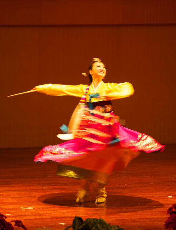 09级研究生校友王金丹带来的女声独唱《阳光路上》,演唱柔美动听,振奋人心,颇显艺术功底。歌曲旋律优美大气,节奏流畅明快,由衷地表达了华夏儿女热情洋溢的精神风貌和阔步向前的坚定信心。陈颖、柳椰两位老师的双钢琴《蛇之吻》,以及王晓佳、胡敏、陈颖、柳椰四位老师的八手联弹《驰骋》,在极富个性、令人眩晕的演奏风格中,掀起了现场观众的热烈掌声。李恒子老师编创并表演的朝鲜族长鼓舞《涛声的节奏》,音乐古朴典雅。表演者端庄飘逸的舞姿,伴以娴熟的鼓技,时而含蓄,时而奔放,引领观众陶醉其中。而采用古筝、二胡、大提琴、打击乐配乐的表演形式,亦给人新颖、独特之感。莫颖老师演绎的肖邦《g小调叙事曲OP.23》,展现了其精湛的演奏技巧和独特的音色处理,她灵动的双手好似在键盘上自由舞蹈,激情奔放中不失细腻。舞台上的她光芒四射,散发着一种渗透到观众灵魂深处的震撼。而外教亚历山大改编的四首钢琴小品,是对经典作品的别样诠释。作品短小,给人意犹未尽之感,但却展示了其扎实的演奏功底和非凡的音乐才华。全场观众无不屏息欣赏,沉浸在他的音乐世界里欲罢不能。许天鸣老师与12级研究生张慧合作的《让我们携手同行》,情深意浓,让人回味无穷。李兵、叶文辉、许天鸣、易雄志四位老师带来的男声四重唱《森林水车》和《渔阳鼙鼓动地来》,演唱风格活泼诙谐,惹得在场观众笑声不断。而刘玉亭老师的一曲深情演唱,一展男高音明亮的音色,更温暖了在场每一个人的心。胡锦超老师诠释的小提琴独奏曲《爱的致意》旋律温婉动人,给人以甜蜜温馨之感;《查尔达什舞曲》或柔美,或激情,让人心潮难平。整场音乐会高潮不断、掌声不断。由李晓燕老师、富春雷老师、06级校友陈波、11级研究生方兴合作的《饮酒歌》,以演唱与交谊舞的结合将现场气氛推向最高潮。在全场雷鸣般的掌声中,音乐会完美落幕。演出结束后,院领导走上舞台,与演员一一握手并合影留念。