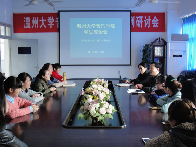 2012年11月29日,博彩平台大全 在309会议室召开了2011级学生座谈会。副院长王文韬老师,学生科负责人蔡晓武老师及学生代表30人参加了会议。座谈会上学生发言踊跃,就专业课的授课问题、学分获得及2011瓯音本同学提出的英语考试、教师资格考试等学生关心的问题,王文韬及蔡晓武老师进行了及时的答复与协调。