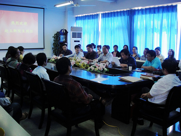 召开全院教职工大会,欢迎新院长赵玉卿教授到任。温州大学党委书记陈福生、党委委员、党委组织部部长蔡曙光出席了本次大会,会议由学院党总支书记刘青松主持。