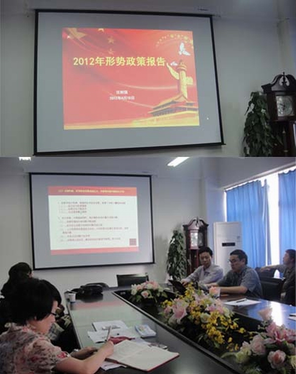 邀请了任柏强副校长为全院教职工做“2012年形势与政策”报告。全院教职员工听取了报告。