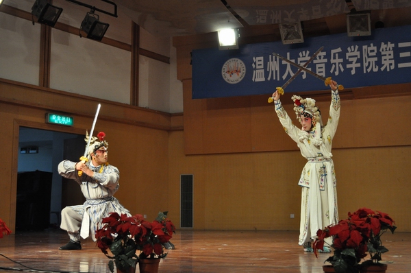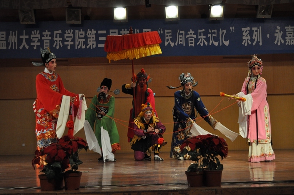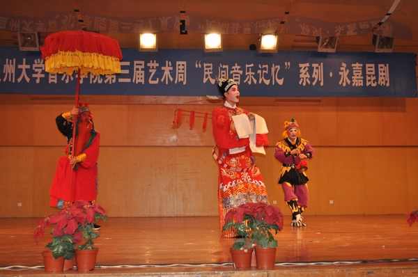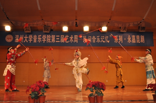 永嘉昆剧是浙南地区具有代表性的区域音乐文化。永昆进校园,不仅为大学校园带来了高雅的艺术,活跃了学校、学院的艺术氛围,而且提高了同学们学习、实践的主动性和积极性,开阔了视野,也是博彩平台大全