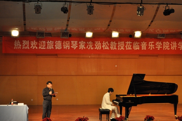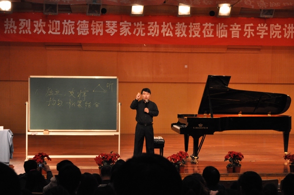 音乐会安排的非常紧凑。冼教授先给我们作了一段简短的演讲,意图告诉我们每个人都要知道自己学习音乐的目的,提出无论以后是否要走专业道路,基本功的锻炼是必不可少的。冼教授讲解思路清晰,话语幽默,并就弹奏中如何表达音乐的内容做出了自己独到的见解。