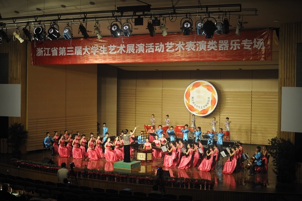 两支专业特色团队在经过几个月的排练之后,女声合唱团表演的《樱花》、《工尺谱游戏》和器乐合奏《龙腾虎跃》均获得浙江省大学生艺术展演乙组(专业组)一等奖。