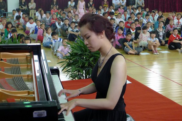 通过这次演出不仅让学校里的孩子们得到了身心的陶冶,而且同学们也得到了实习的机会,提高了我们自身的心理素质,感受到了舞台的氛围,让我们在以后的演奏会上取得更大的成功。