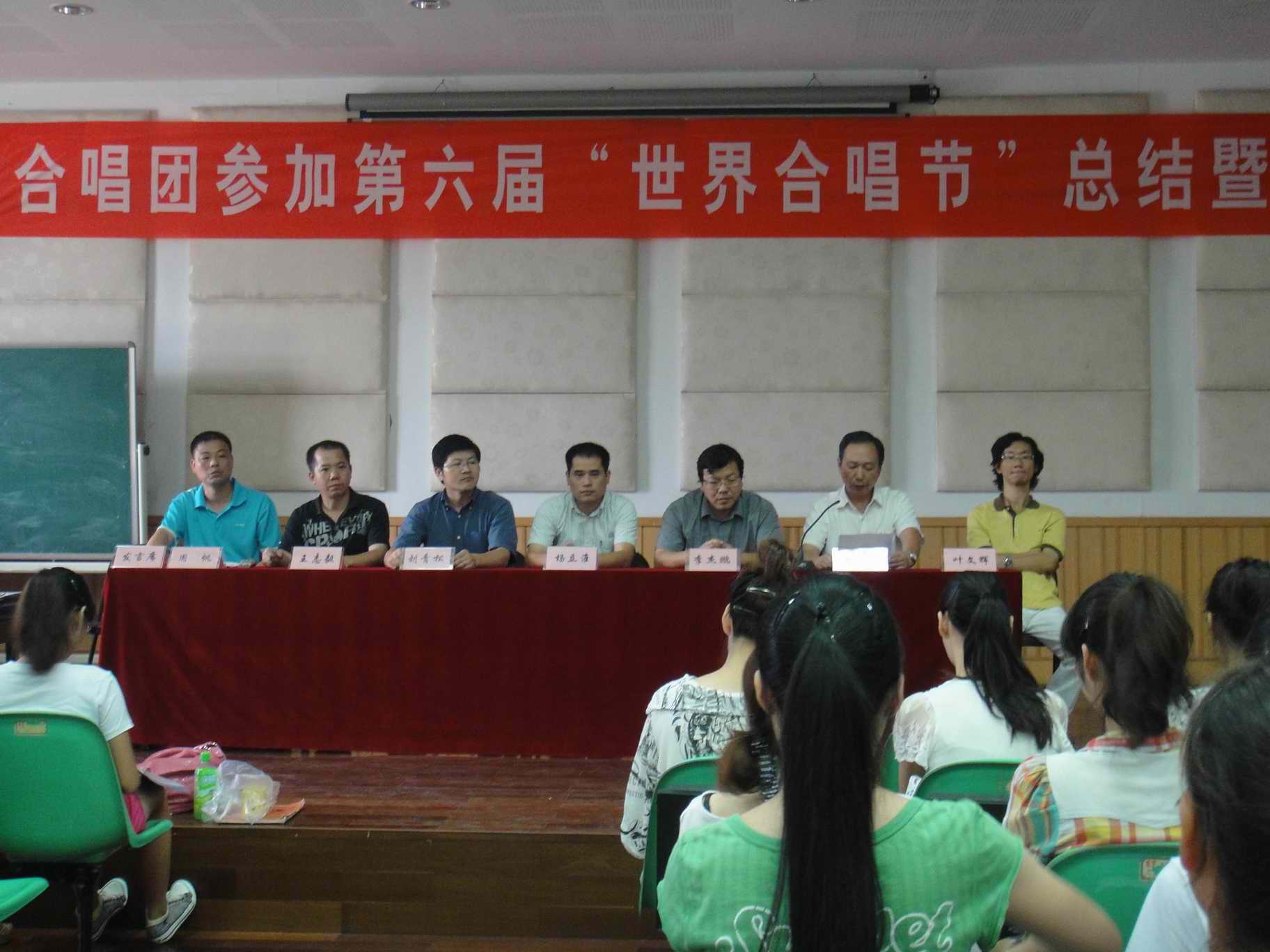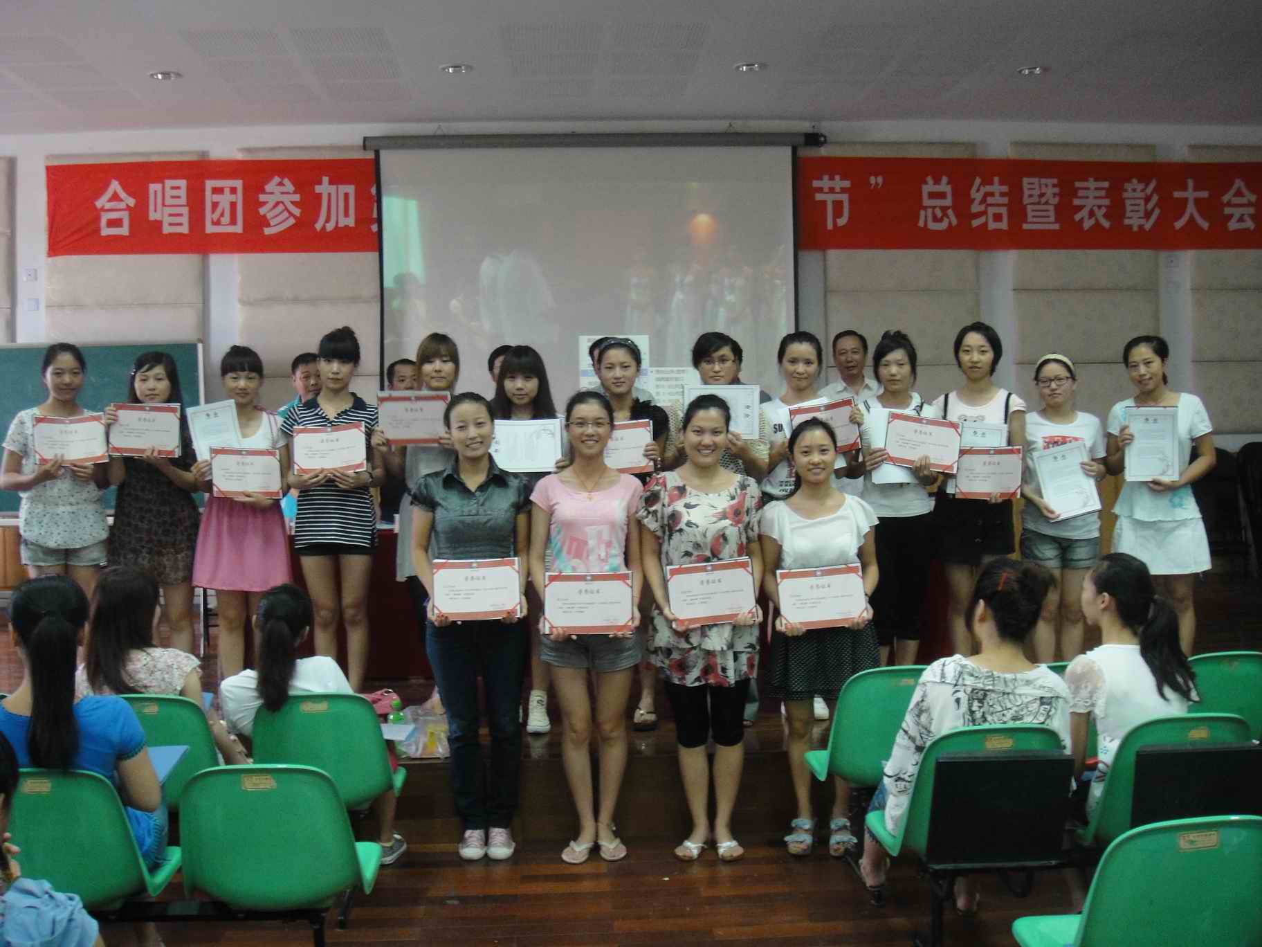 女子合唱团参加第六届世界合唱比赛总结暨表彰大会。出席会议的有校团委杨立淮副书记、学院领导刘青松、李杰鹏、王志毅以及合唱团全体成员50余人。会议由李杰鹏副院长主持。