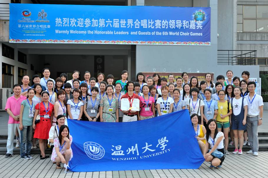 女声合唱团在比赛中精彩演绎了《山在虚无缥缈间》、《Mata del Anima Sola》(《孤独的树》)、《Sakura Sakura》(《樱花》)、《李有松》(温州方言)等中外作品,在众多团队中脱颖而出,以总分81.38分喜获“第六届世界合唱比赛——锦标赛”女声合唱组的金奖,展现了温大学子的风采,为学校和中国争得了荣誉。颁奖典礼现场,队员们激动不已,热泪夺眶而出,紧紧拥抱在了一起;指挥叶文辉老师上台接受了国际文化交流基金会、世界合唱比赛艺术总监艾森拜斯教授的祝福和颁奖。