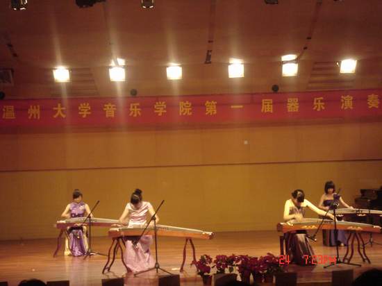 此次器乐演奏会所涉及的器乐有琵琶、二胡、古筝、扬琴,还有小提琴;演奏形式多样,有齐奏、独奏、独奏加伴奏、重奏等。07、08、09的学生都带来了精彩的表演,如琵琶独奏《火把节之夜》、古筝独奏《孔雀东南飞》、二胡独奏《豫北叙事曲》、古筝齐奏《土耳其进行曲》、二胡齐奏《北京有个金太阳》、小提琴二重奏《波尔卡舞曲》等共14首作品。