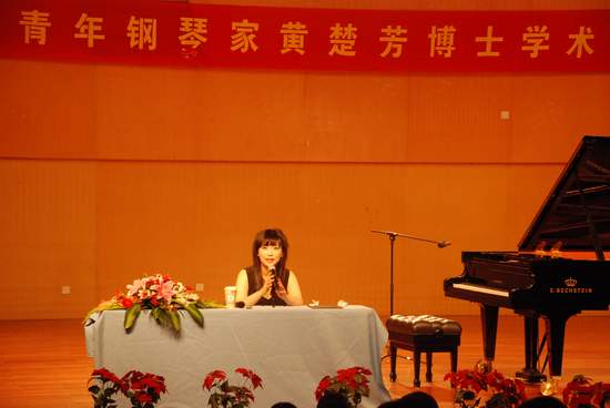 金婷婷同学弹奏的《肖邦圆舞曲Op18》和王旻驹同学的《肖邦练习曲Op10 No8》表示肯定并进行了点评。师生们踊跃发言,就如何提高钢琴演奏水平等问题与黄博士形成了有效的互动,气氛热烈。师生们纷纷表示,此次讲座受益匪浅。文/马鹰奇