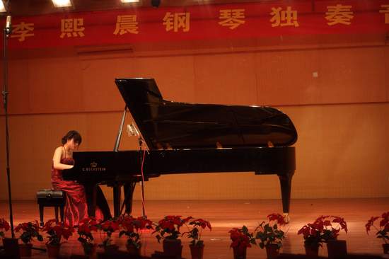07级音乐学专业李熙晨同学在北校音乐厅举办个人钢琴演奏会。音乐会以舞剧《鱼美人》中的选曲开场,优美动听的歌曲,变化多端的气势情感和娴熟的弹奏技巧给人以美的享受;李斯特音乐会练习曲则以连串的琶音开始,如歌的旋律,仿佛让人置身于蓝天碧海,联想翩翩。下半场中贝多芬的《F小调第二十三钢琴奏鸣曲》把整场音乐会推向了高潮,并随着格什温《前奏曲》步入尾声。整场音乐会跌宕起伏、扣人心弦,曲子动听流畅,充满热情,给在场的观众带来了强烈的视听享受。