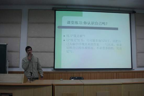 12月22日晚,全球博彩平台大全网站 辅导员郑颖老师在音乐楼201为团学干部带来了一次“做最好的自己”的精彩培训。各班班长、团支书和院学生会干部参与了此次培训。 郑老师从游戏入手,围绕着“认识自我”这个主题,分别从自我意识的涵义、大学生自我意识的主要特征以及如何做最好的自己三个方面展开阐述,并在其中穿插了一些练习和互动。 干部们积极参与,大胆发言,并在热烈而又欢快的气氛中明白了很多深刻的道理,领悟到了怎样认识了解自己,客观地评价自己,如何更好地完善自己以及在此基础上更好地与他人交流合作。