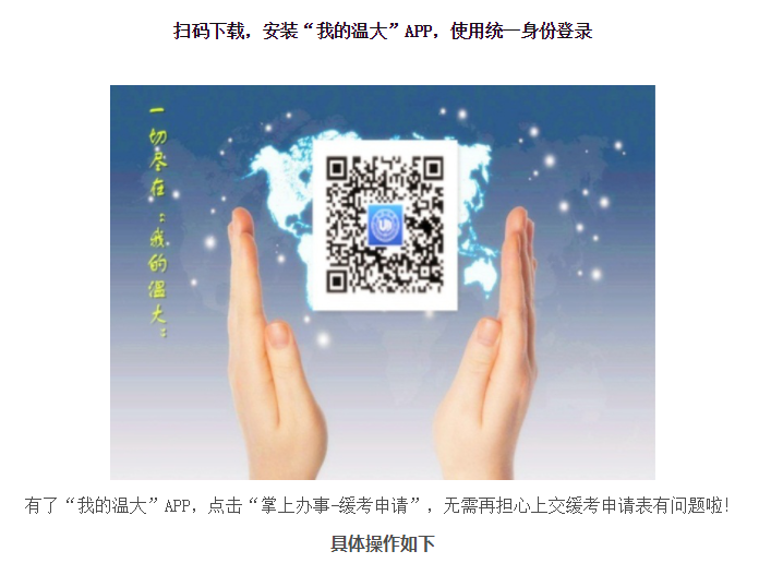 扫码下载,安装“我的温大”APP,使用统一身份登录